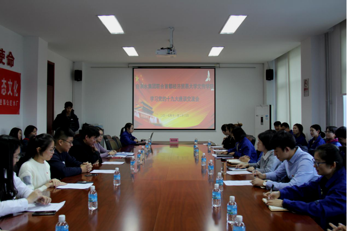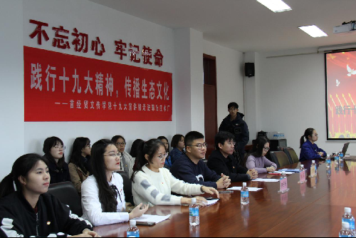 2017年11月23日下午2点,“践行十九大精神,传播生态文化”主题宣讲活动在郭公庄水厂办公楼一层会议室顺利举行。此次宣讲活动由性爱电影 和郭公庄水厂、禹通集团共同举办。北京市自来水集团团委副书记张薇、郭公庄水厂党支部副书记、工会主席潘莉以及青年团员代表出席会议,性爱电影 分团委书记宿东泽,辅导员代启蒙、陈子轩以及学生党员、入党积极分子共22人参加了此次活动。