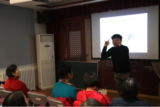 刘骏晟老师在讲课之前做了充分的准备,PPT制作非常精美,不仅有文字内容,同时还细心挑选了优秀摄影作品为社区居民们仔细地讲解,居民们听的也非常细心,有拿着纸笔做笔记的,还要的及时用手机照下PPT的内容,有听不懂的地方积极向刘老师提问,居民们自己也互相交流起了学习的收获。