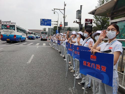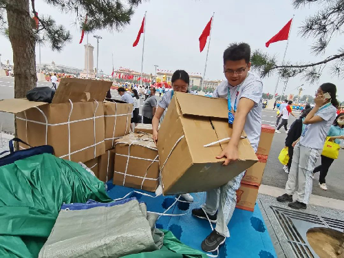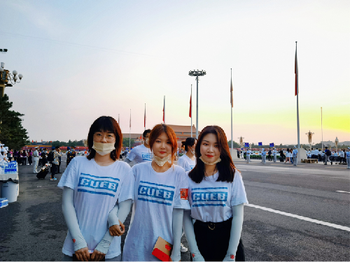 文传学院共有4名同学参与此次志愿服务的物资保障工作,在天安门城楼前用最热情的微笑,最周到的服务圆满完成岗位任务。其中两次演练,多次踏勘,上百小时的培训,从落客点到岗位点平均每人三站地铁的路程,从傍晚到天明,以心中坚定的信念确保自己每一次服务的最佳状态。