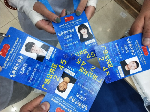 文传学院共有3名同学参与了前门东路服务区域的志愿服务工作。凌晨3点到岗,清晨5点多迎来了第一辆大巴车,引导区域内参会代表有序入场之后,他们在原地守候;大会过程中,飞机从头顶飞过,礼炮声在耳边振响,所有志愿者起立共唱国歌,气球和和平鸽同样在头顶飞过,让他们感到无比的震撼与激动;大会结束后,他们引导参会代表返回自己的车辆,看着大家离开,挥手再见,一句句“辛苦了”让他们内心无比满足!他们在离现场最近的场外,见证这一光辉时刻,用微笑和汗水,展示出了风华正茂的时代精神!