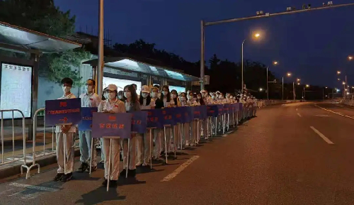 6月30日深夜,文传学院19名师生深夜集结,分别前往物资点、前门东路两个核心区域,以及公益西桥远端集结点共三个保障地点进行服务,分发物资、秩序维护、线路指引、安全检查,志愿者们用最饱满的精神状态热情服务每一位参会人员,圆满完成庆祝中国共产党成立100周年大会志愿服务保障工作。