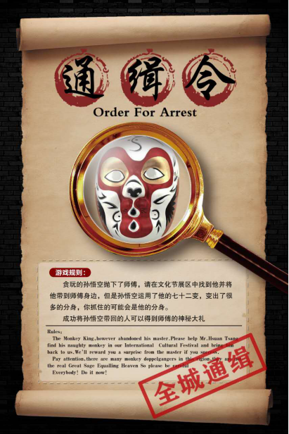 活动当天,最吸引人的当属“寻找孙悟空”游戏。参与者根据文传志愿者分发出的传单寻找面带孙悟空面具的人,分辨出真假后,只要将真正的“孙悟空”带到小亭子处即可领取奖励。来自各国的参与者开动脑筋,积极参与。每个人的脸上都洋溢着笑容。