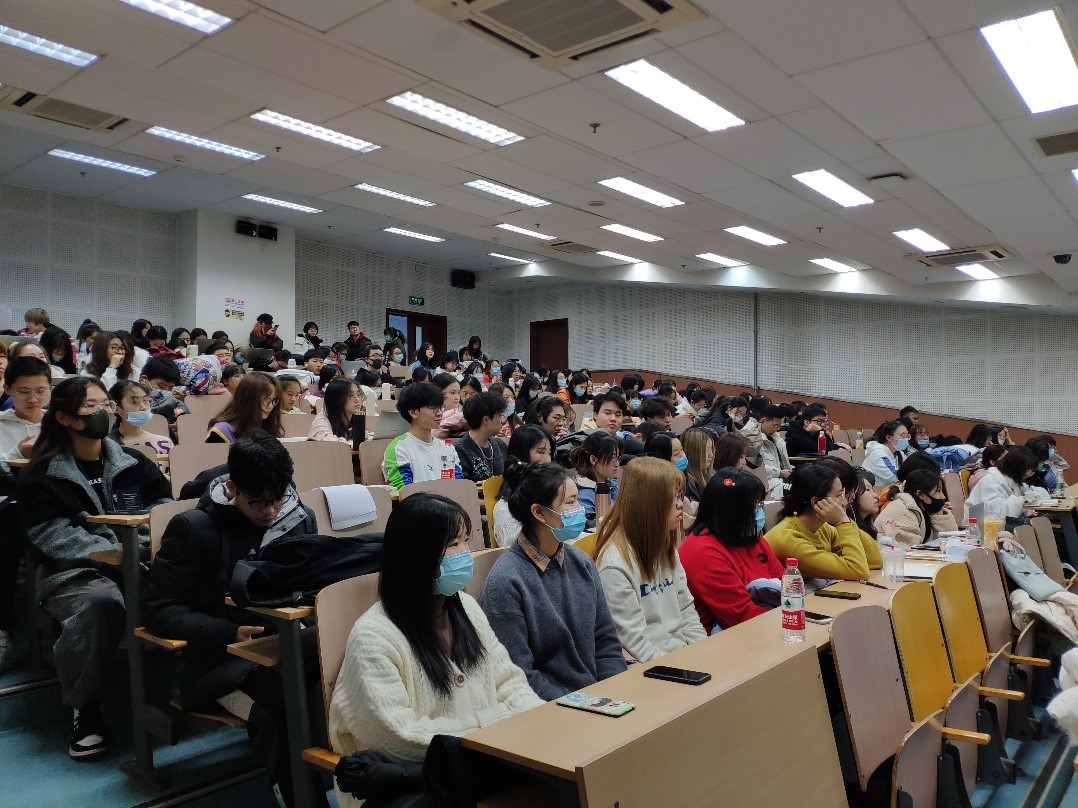 然后,副书记高琼进行本科生综合素质认定册方案解读,重点介绍了综合素质的评定办法,讲解了加减分规则和评优评奖流程。临近期末考试,高琼老师强调考试纪律,要求考试诚信。老师们在讲解后与同学们积极互动,为大家答疑解惑。