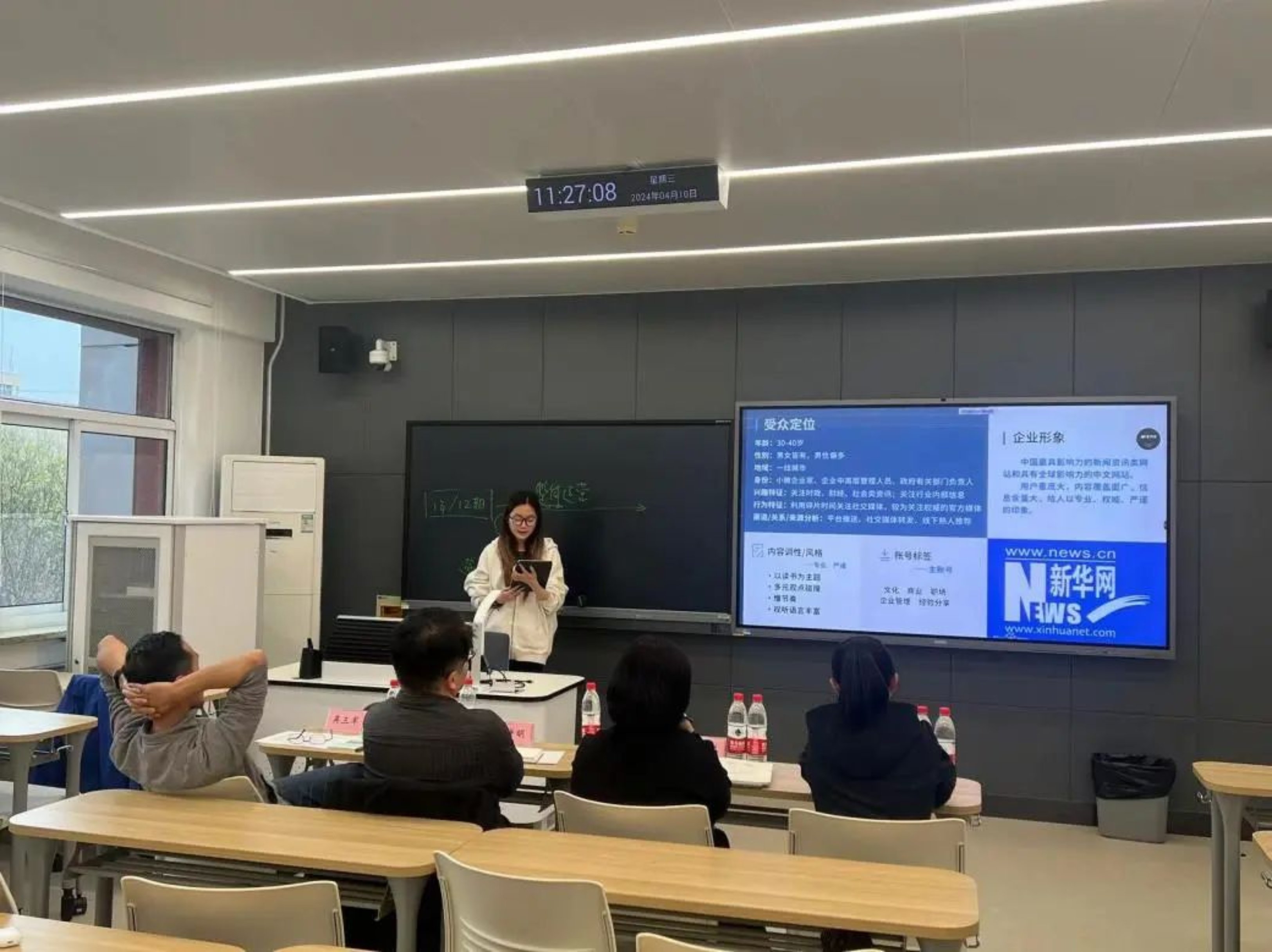 在新媒体产业运营这门课程中,授课教师徐轶瑛不仅讲授新媒体产业运营的相关理论知识,同时带领学生一同策划和运营新华网《总裁读书会》栏目。2021级传播学三个班级的同学们被分为十三组,每组设立AS(组长)、策略、创意、媒介与活动五个职位,组建真实新媒体运营团队。通过前期五次课程的知识点讲解和对各小组汇报的点评与指导,学生们逐步形成完整的运营方案,并且对新媒体产业运营有了更深入的理解。
