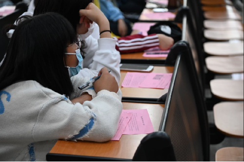 2020年9月24日下午,性爱电影 全体新生在大学生活动中心二层,接受图书馆老师靳彤、保卫处老师邓超为2020级新生进行的入学教育。