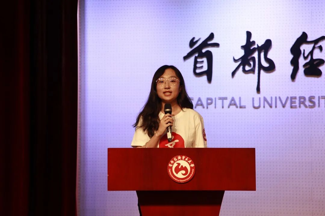 随后,广告学系教师王子琪作为教师代表进行发言。她在发言中表示,期待新生们以一种专业的态度扮演好每一个阶段社会赋予的角色,也祝愿同学们能在大学生活里交到知心的朋友,心怀感激、奉献关怀。