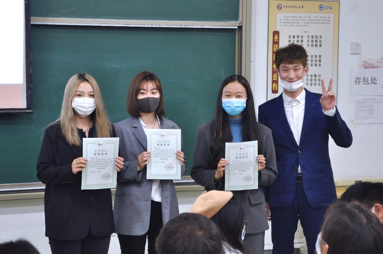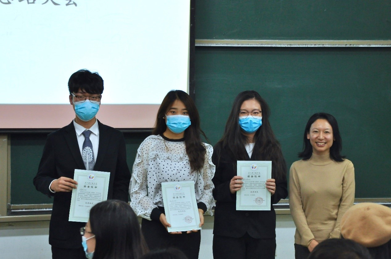 大会第二项,由党总支副书记高琼、分团委书记郭奕彤和兼职辅导员贺琦颁发本学期优秀部长证书。本学期各部门工作进展顺利,完成度高,这与各位部长的辛勤付出是分不开的,在此对优秀部长进行表彰。