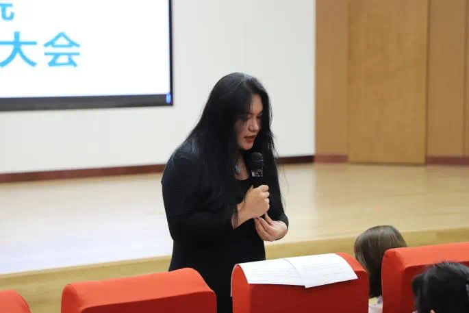 竞选发言结束后,党总支副书记高琼、专职辅导员袁心玥、兼职辅导员王茜分别发言,她们表达了对团学组织成员们的感谢、肯定与期许,并表明希望在新一届团学负责人与部长们的带领下,文传学院团学组织能够越来越好。“文传人,在发光”