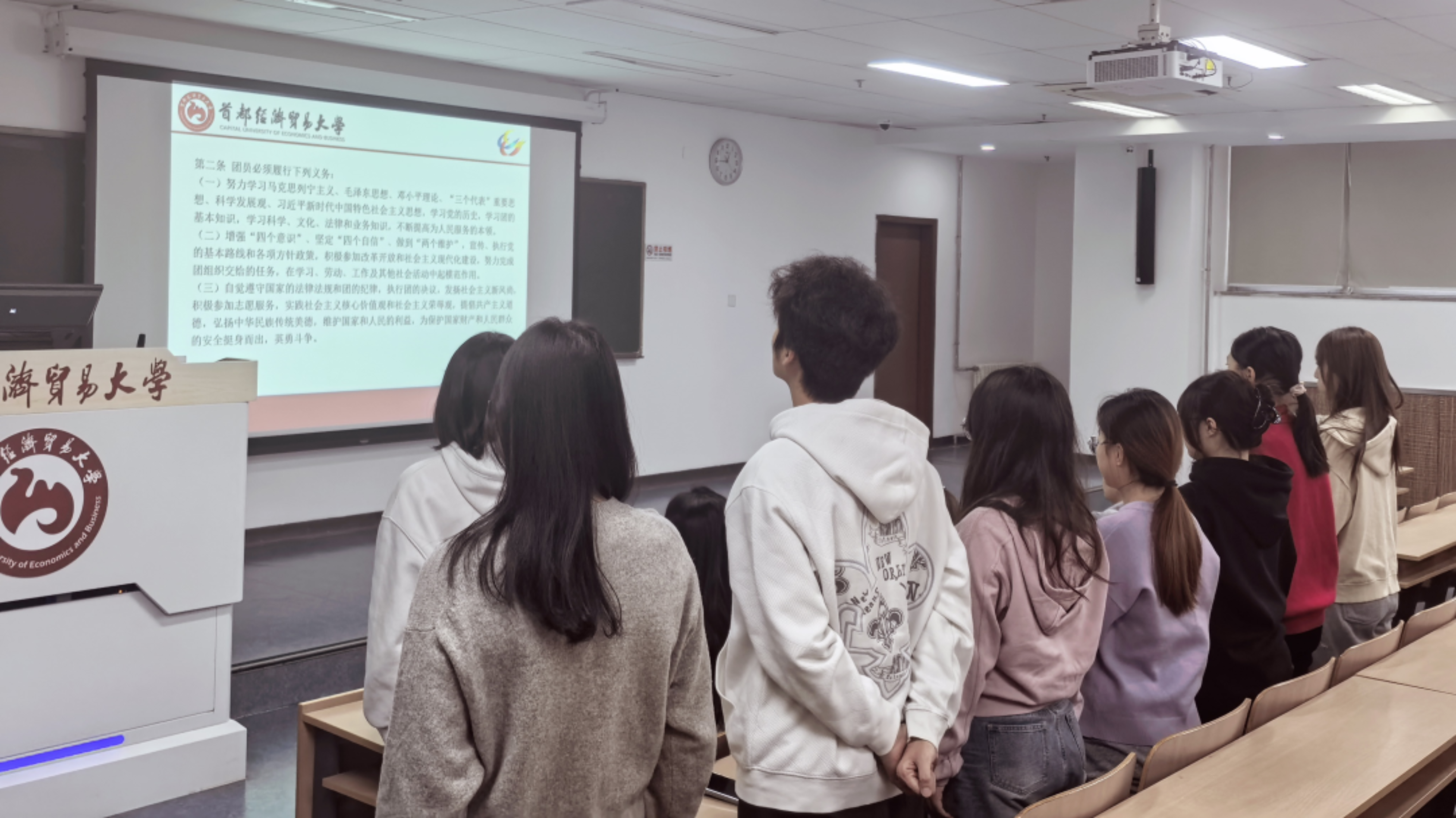 2025年12月8日,性爱电影 团委举行2025年新发展团员入团宣誓仪式。参加本次会议的有团委书记郭奕彤,学生副书记闻雨轩、李丹、隗祎霖、马宇轩以及七位新发展团员。