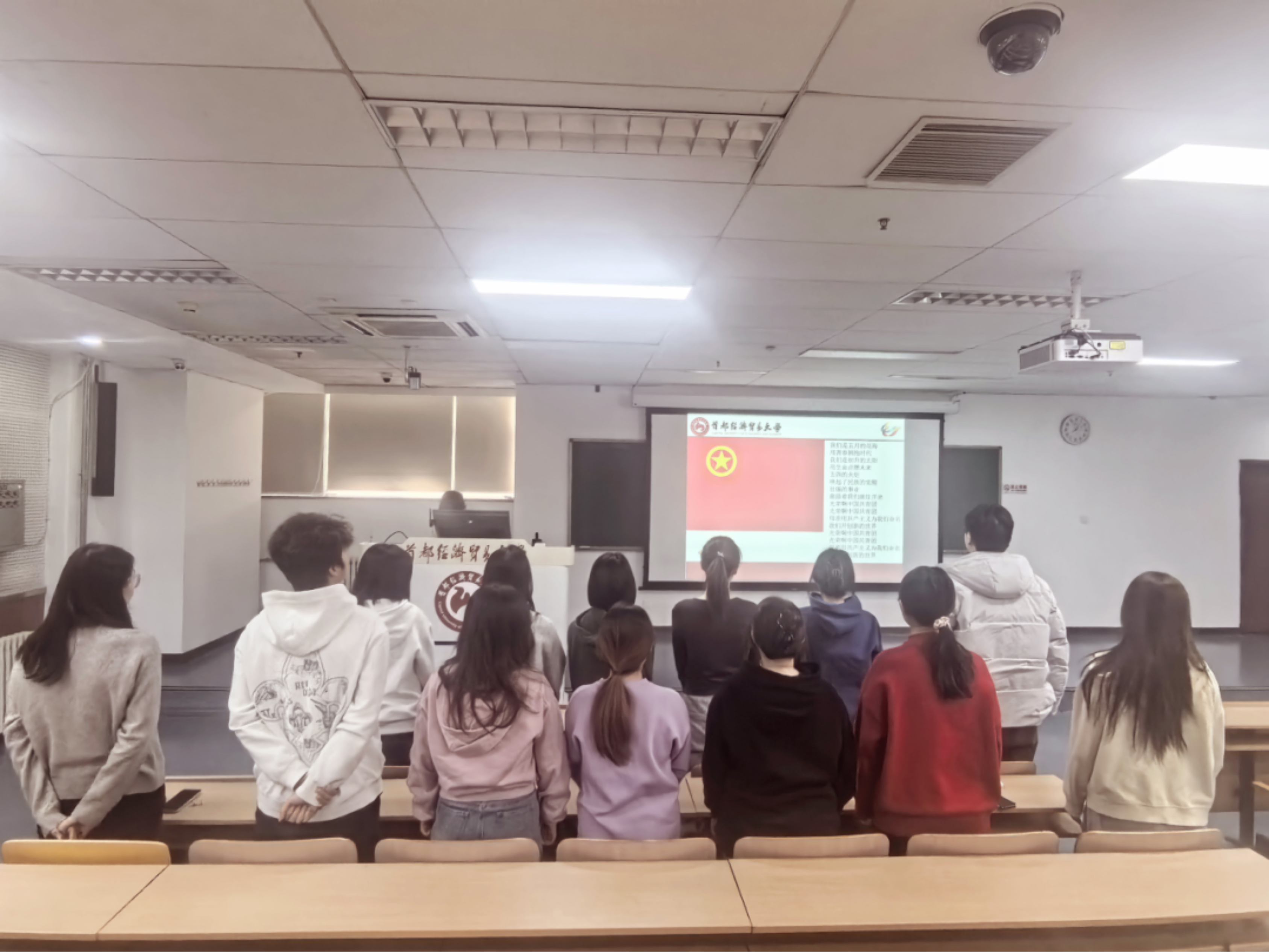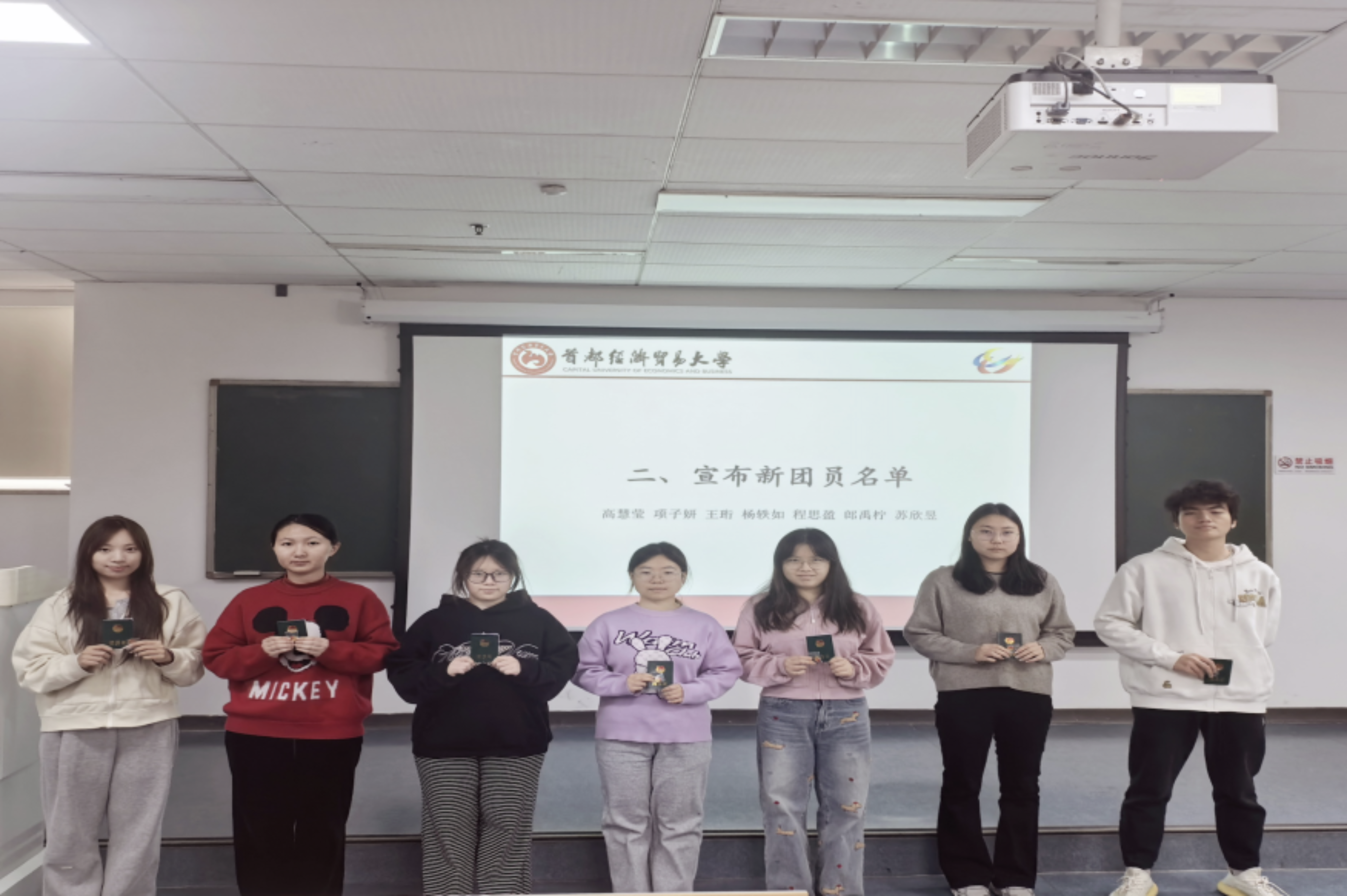 信仰在旋律中扎根,责任在歌声里回响。当国歌奏响,入团宣誓仪式正式拉开序幕。大会第一项,主持人杨一鸣郑重宣布了新发展团员的名单:高慧莹、杨轶如、项子妍、程思盈、王珩、郎禹柠、苏欣昱,这七位同学光荣地成为了中国共产主义青年团的一员。