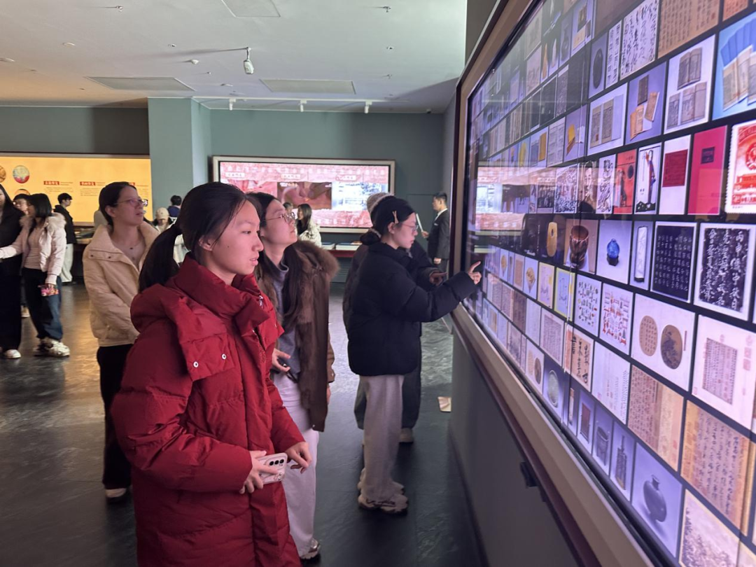随后,师生们参观了“文瀚聚珍——中国国家版本馆捐赠入藏精品版本展”,展陈的各类精品版本涵盖典籍、手稿、书画等多个类别,每一件藏品都有着独特的历史背景和文化价值。师生与讲解员积极互动,对版本文化有了更为全面、深入的认识。