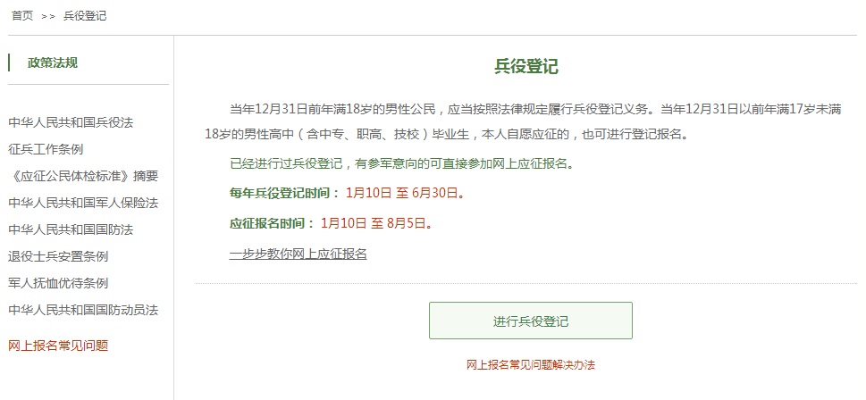 1.进入全国征兵网://www.gfbzb.gov.cn/。点击右上方“兵役登记”