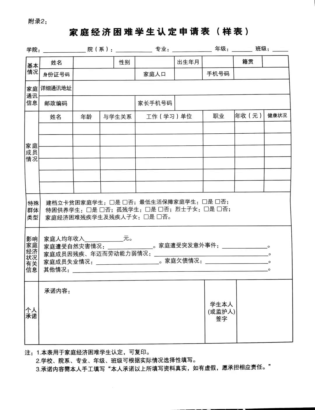 材料1、《家庭经济困难学生认定申请表》(见附录2);