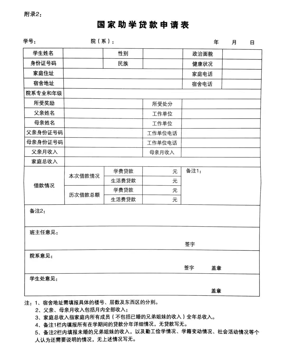 材料3、《国家助学贷款申请表》(见附录2);