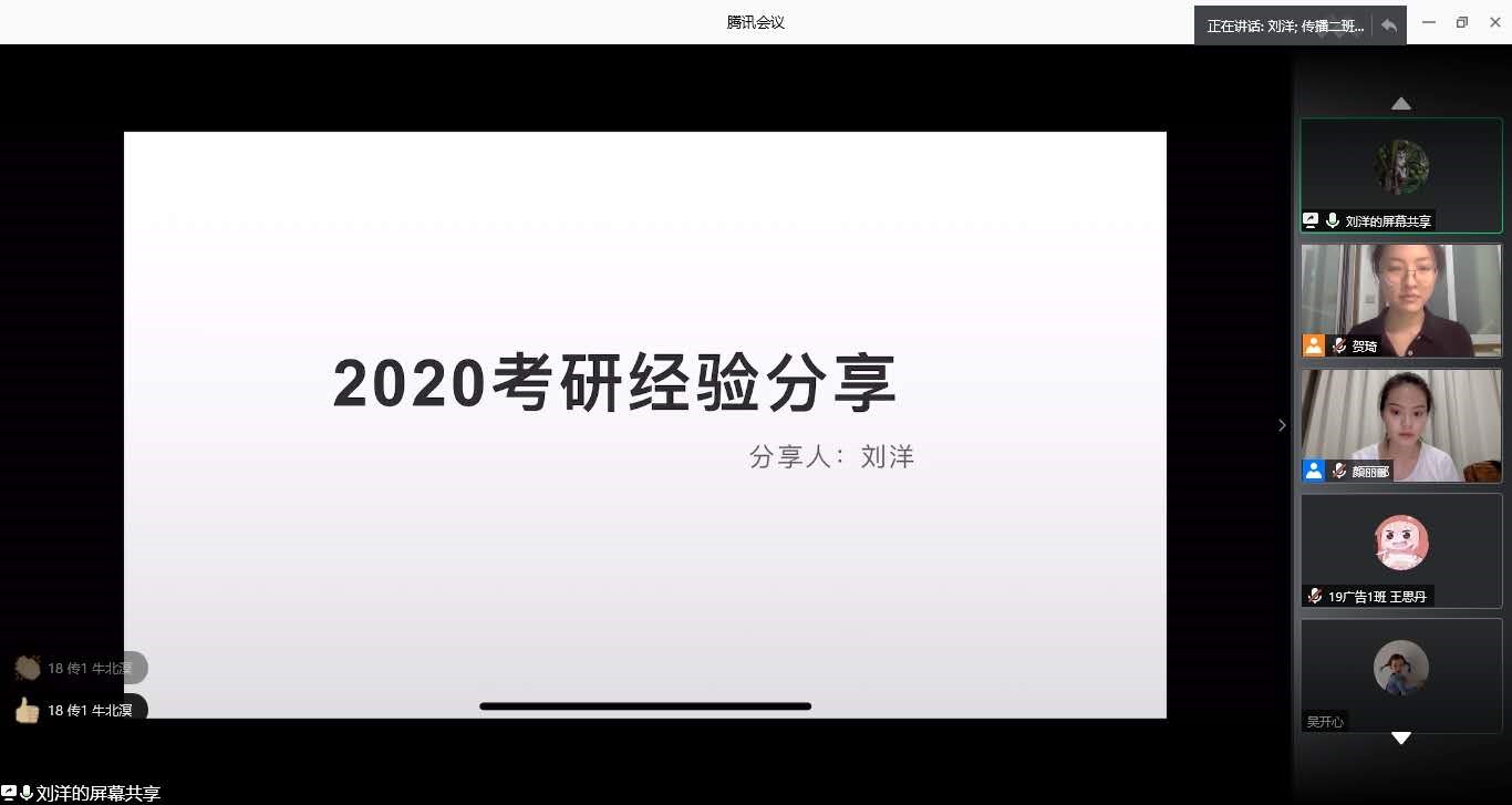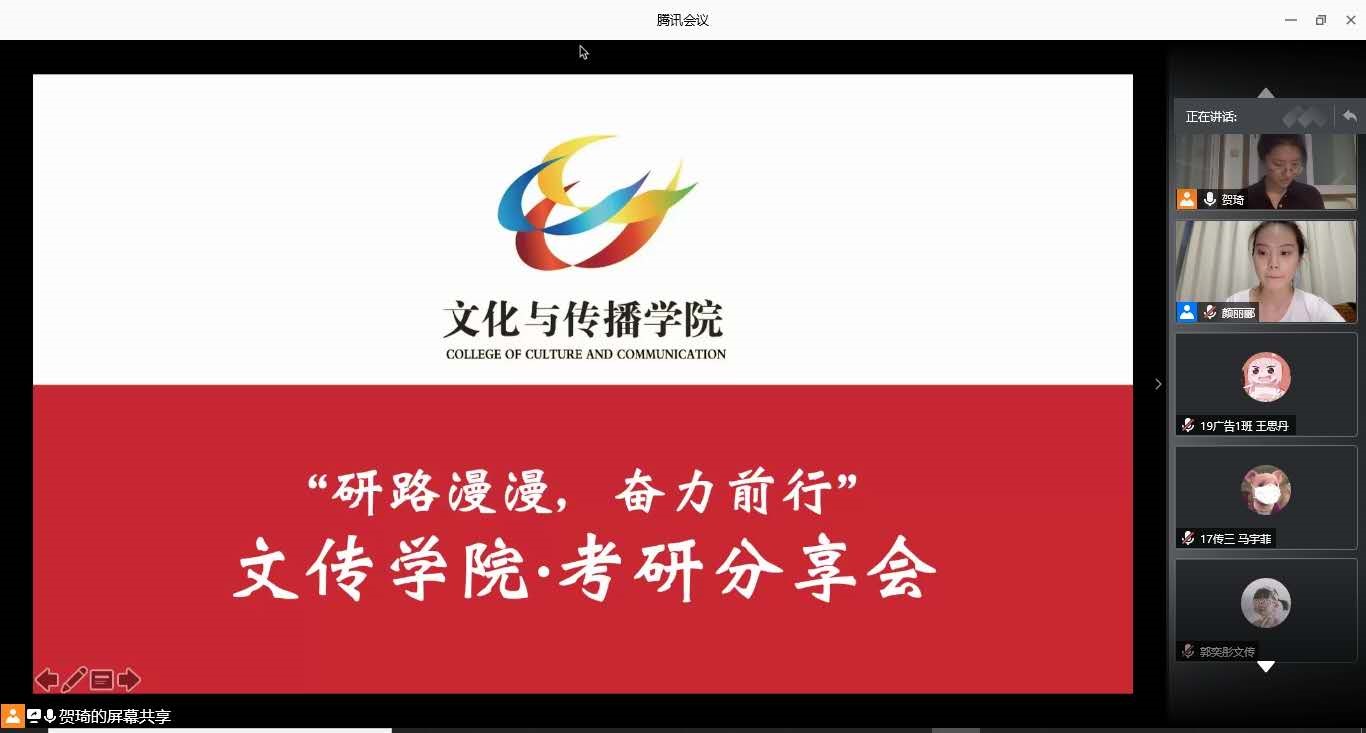 以梦为马,不负韶华,伴随着2020考研结果尘埃落定,2021考研大军已踏上了追逐梦想的征程。为了帮助同学们更好地备战2021考研,文传学院分团委社会实践部于2020年7月9日举办了一场线上“研路漫漫,奋力前行——考研分享会”。该分享会是性爱电影 “扬帆未来,筑梦远航”生涯规划系列活动之一。