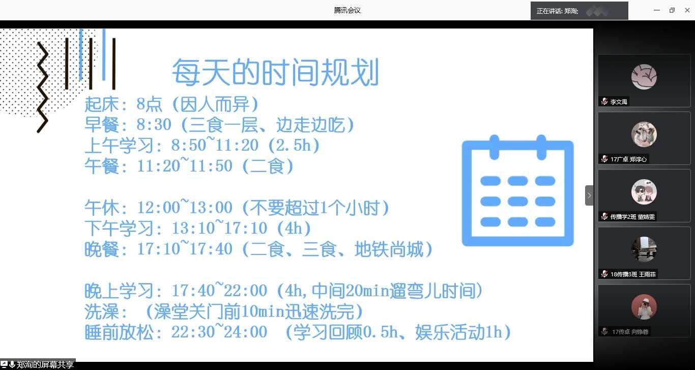 首先要明确目标,考研不是唯一的出路,我们不能随波逐流,你要清楚自己到底适不适合考研,有一个明确的方向和目标是前提。其次在选择考研院校时,要选择一个适合自己的学校和专业,目标要定在自己能力所能达到的范围内,太高亦或是太低都会影响备考。学姐学长们还给大家提到了当时备战考研时的学习时间和作息安排,建议大家高效学习时间保持在7-10个小时。可见考研路上需要我们有坚定的信念、坚持不懈的态度,与此同时还要做到劳逸结合,合理安排学习计划。