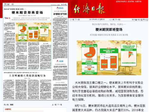 经济日报社是我校性爱电影 “部校共建”单位和学生实习基地。张子悦同学于2019年暑假在经济日报社实习期间,曾参与东北粳米期货调研活动。她通过实地参观和采访多家企业,深刻认识到大米产业的重要性。同时,她充分认识到粳米期货上市有利于优势企业做大做强,提高行业规模化水平,也有利于完善稻谷最低收购价政策,减轻国家负担,形成市场化定价机制,为国家粮食安全提供有力保障。调研结束后,张子悦与经济日报财经新闻部记者祝惠春合作完成《推动水稻产业规模化、集约化、标准化——粳米期货即将登场》一文,从产业避险需求强烈、粳米期货上市有助风险管理、推动产业提质三个方面进行了报道,并刊登于《经济日报》2019年8月1日第7版财经版面。