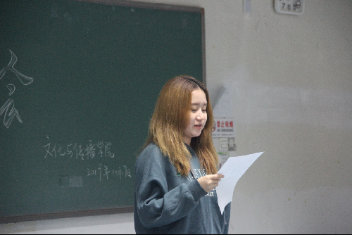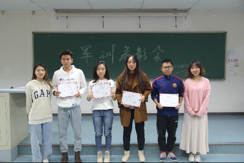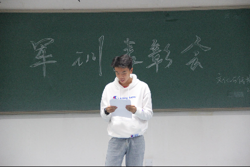 传播一班的王翔同学讲述了六连男生在军训时发生的事情,其中有搞笑的事,有感动的事,有使他受益的事,也有令他骄傲自豪的事,引起了在座的同学们的共鸣。