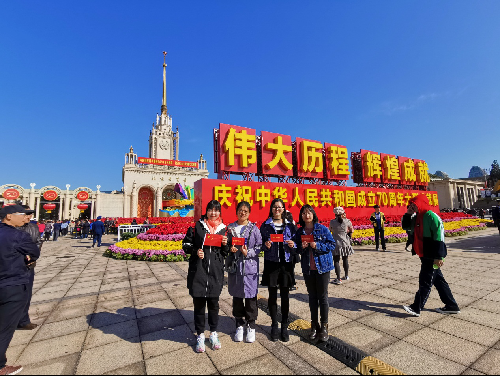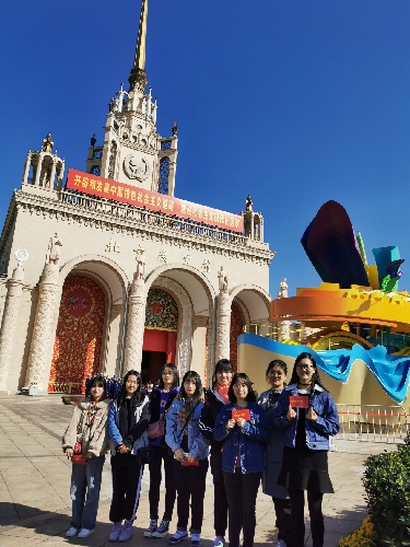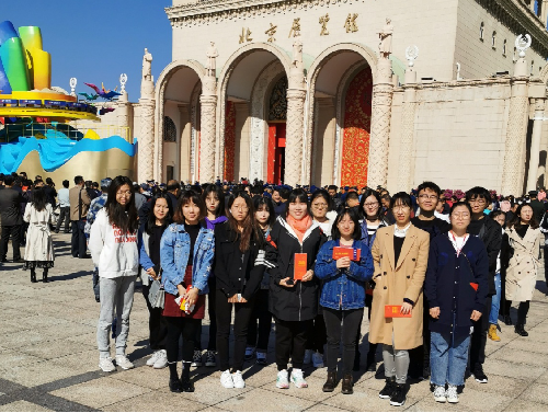 2019年10月15日上午,性爱电影 专职辅导员尹可心带领学生代表来到北京展览馆参观“伟大历程 辉煌成就——中华人民共和国成立70周年”大型成就展。