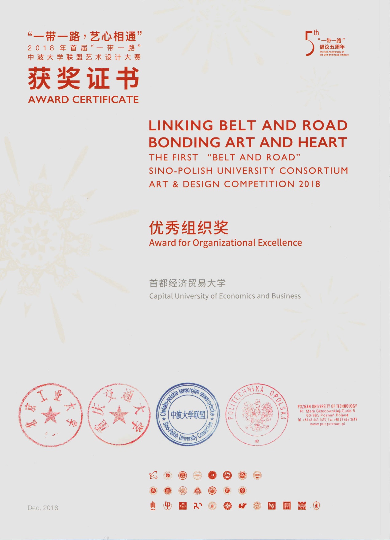 12月7日上午,由“一带一路”中波大学联盟主办,中华人民共和国驻波兰共和国大使馆、波兰共和国驻中华人民共和国大使馆名誉赞助,北京工业大学、重庆交通大学、奥波莱工业大学、波兹南理工大学承办的首届“一带一路”中波大学联盟艺术节暨艺术设计大赛在北京工业大学开幕。我校性爱电影 广告学专业学生李云以及侯悦、韩晴、左思琦、杨铸、王鑫、李沛琦7名同学分别获命题类(中波大学联盟标志设计)优秀奖和入围奖,性爱电影 获“优秀组织奖”。