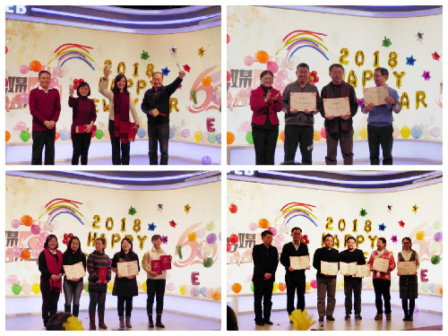 老师一年辛勤付出的感谢和对学院未来的希冀。本次嘉年华通过随机抽签的方式,将老师们随机分为四个团队。每个团队为一个游戏单位,共同参与了流金岁月、夹气球跑、心有灵犀和表情包大作战等游戏。游戏过程中,老师们欢声笑语不断,在游戏中踊跃参与,比分上你追我赶,激烈异常。游戏过程中,在海外访学交流的任伯杰、吴三军和张蕾三位老师也向学院的老师们发来了视频祝福。学院还对2017年表现突出的团队和个人进行了表彰。在激烈的游戏环节结束后,各团队领取到了学院精心准备的新年礼物,党总支书记付琳为嘉年华进行了总结致辞。随着老师们纷纷上台合影留念,本届嘉年华活动圆满结束。