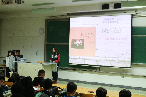 第三个上场的是传播学三班的学生,分享书目为杨绛先生的《我们仨》。新颖的图书发布记者会的展示形式令人耳目一新。“世间好物不坚牢,彩云易散琉璃脆。”杨绛一家三口平淡单纯的故事感染了在座师生,淡淡的温馨同样回味在每个人的心中。