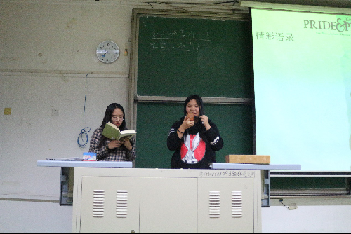 首先,主持人宣布读书分享会正式开始:“安居不用架高楼,书中自有黄金屋,娶妻莫恨无良媒,书中自有颜如玉…”的开场白引起台下的热烈掌声。