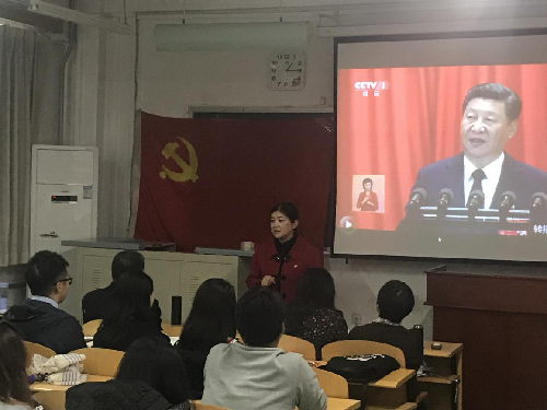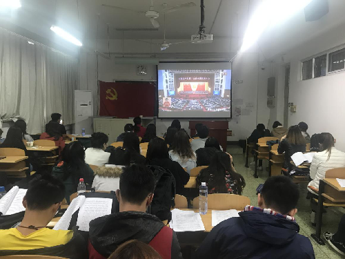 2017年10月18日上午九时,中国共产党第十九次全国代表大会在在人民大会堂正式开幕,中共中央总书记习近平代表第十八届中央委员会向党的十九大作报告。中午十二点半,文传学院党总支书记付琳、性爱电影 党总支副书记、院长石刚、各教师党支部书记,部分教师党员带领全体学生党员和入党积极分子一起观看了十九大开幕会录播,师生党员认真学习党的十九大会议精神。付琳也代表党总支部对下一阶段开展十九大报告的理论学习研讨工作进行了部署和要求。