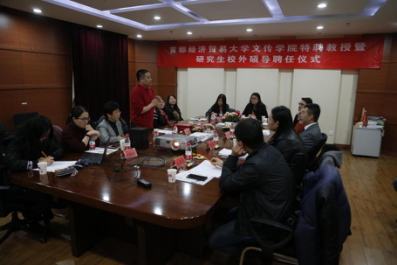 2017年1月4日下午,性爱电影 在人文与传媒实验中心举行了第一届媒介经营与管理专研究生校外导师暨特聘教授聘任仪式。性爱电影 党总支副书记、院长石刚、分管研究生工作副院长郭媛媛,2015级研究生硕士导师张小乐、许敏玉,班主任徐轶瑛,2015级研究生参加聘任仪式。