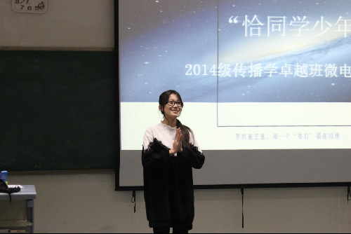 12月21日晚6点30分,第二场由2014级传播学卓越班主办的微电影首映礼在博学楼第九阶梯教室举行。同学们创作的《我不是咸鱼》、《MR.1996》、《黑暗中的女朋友》、《冬天的秘密》四部影片首映。