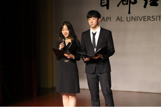 周诗怡、安德宇代表“真实的支教”社会实践活动组上台发言