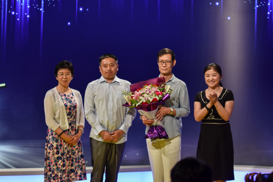 颁奖环节的最后一项,是特别为学院艺术教研部书法教师宫双华准备的环节:宫双华的书画人生。6月1日是宫双华老师正式退休的日子。为感谢宫双华老师多年来对学校、学院做出的贡献,特授予宫双华老师“卓越贡献奖”。文传学院院长石刚为宫双华颁奖。学院、艺术教研部和宫双华的学生们都分别为他准备了礼物。石刚院长高度评价了宫双华的书法造诣,充分肯定了其对学院的巨大贡献。随后,宫双华老师向在场的观众介绍了他未来十年的愿景和完成这个愿景的决心。