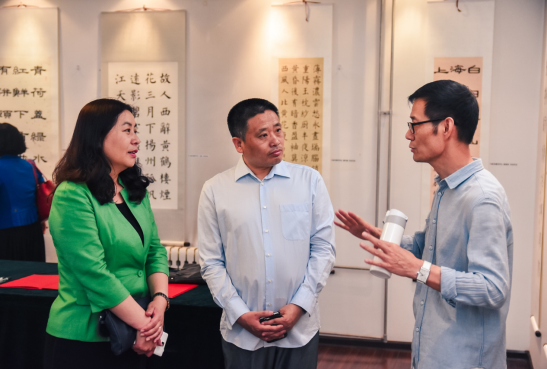 徐芳与石刚共同为作品展揭牌