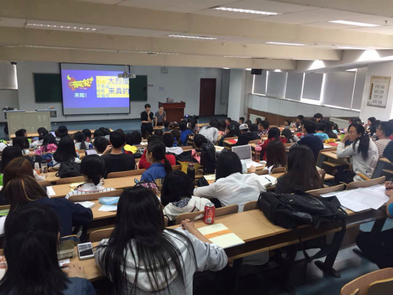 首期“文传大讲堂”于博学楼第二阶梯教室开讲。此次讲座主讲人是爱奇艺网络综艺节目《奇葩说》的两位导演:丁琪和王雪,他们就节目幕后的一系列制作故事与同学们进行了交流。