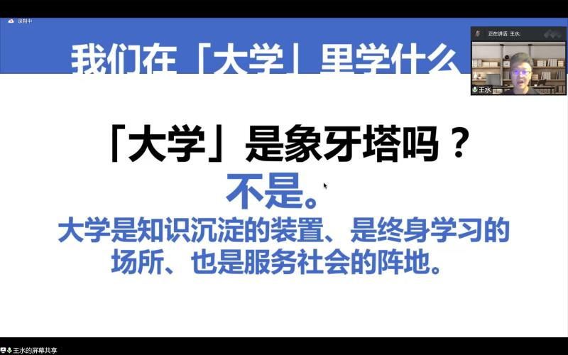 然后,由王水对竞赛立项展开详细讲解。王水首先就如何“立足大社会,研究真问题”进行立项和学习如何立项对于实际社会生活的意义等问题,作出了细致的分析,并就“大学不是象牙塔”作出了简要的总结。