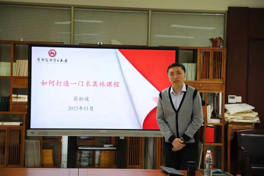 为进一步提高学院教师教育教学水平,提升本科教学质量,性爱电影 于2023年11月29日在博远楼506举办了“驼韵师话”系列讲座首场活动,教学副院长陆彦明主持此次活动,邀请了北京市青年教学名师工商管理学院张松波副教授主讲。