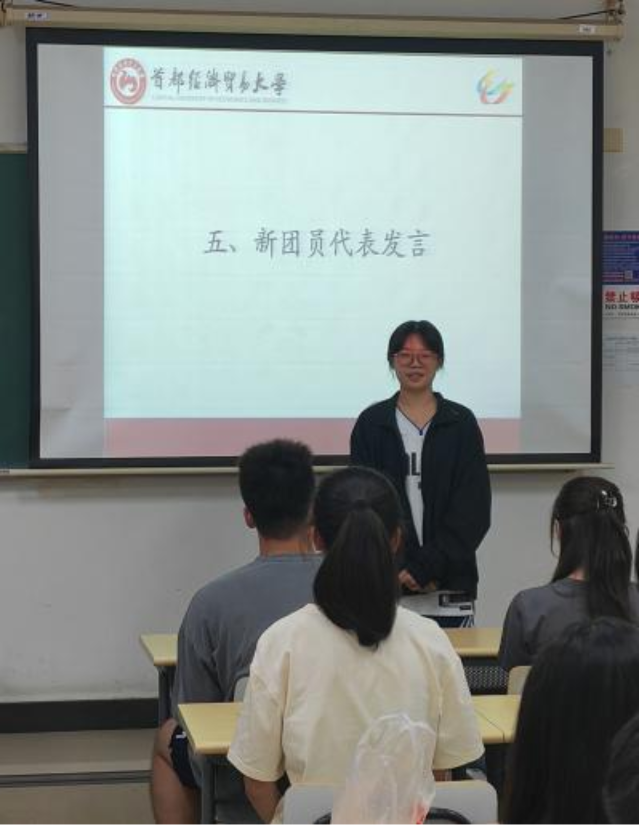 在仪式的尾声,分团委书记郭奕彤向十位新团员寄语。她强调,这次入团不是大家奋斗的终点,而是新的奋斗起点,作为新入团的青年,大家要铭记共青团员的身份,始终以优秀团员的标准为镜,用实际行动践行庄严的入团誓言。她鼓励大家树立伟大理想抱负,勤奋学习、踏实做事,在集体里起到模范带头作用,要更积极地去面对困难,挑战困难,战胜困难。希望大家能够坚定理想信念,继续走好青年追求政治进步的“人生三部曲”。