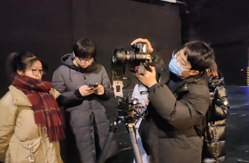 2025年1月16日至17日,在席田亮老师的指导下,同学们先后在国家大剧院、北京坊东区E14VR沉浸式放映厅进行全景拍摄,实操中老师逐项指导标准化操作。