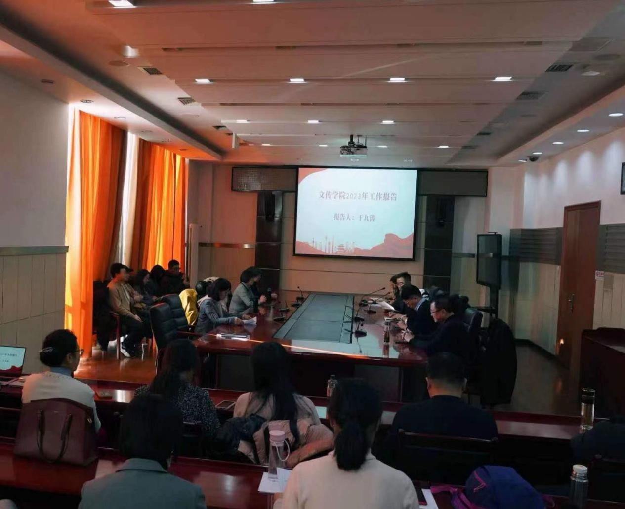 大会在庄严的国歌声中开幕。首先,院长于九涛向大会作了文传学院2023年工作报告,系统梳理了一年来学院工作取得的成绩和存在的问题,并提出了下一阶段重点任务。于九涛指出学院党委和院行政继续采取有力措施,狠抓各项工作的落实,带领全院教职工团结一致,开拓创新,谋求学院更大的发展,为学校的跨越式发展做出应有贡献。