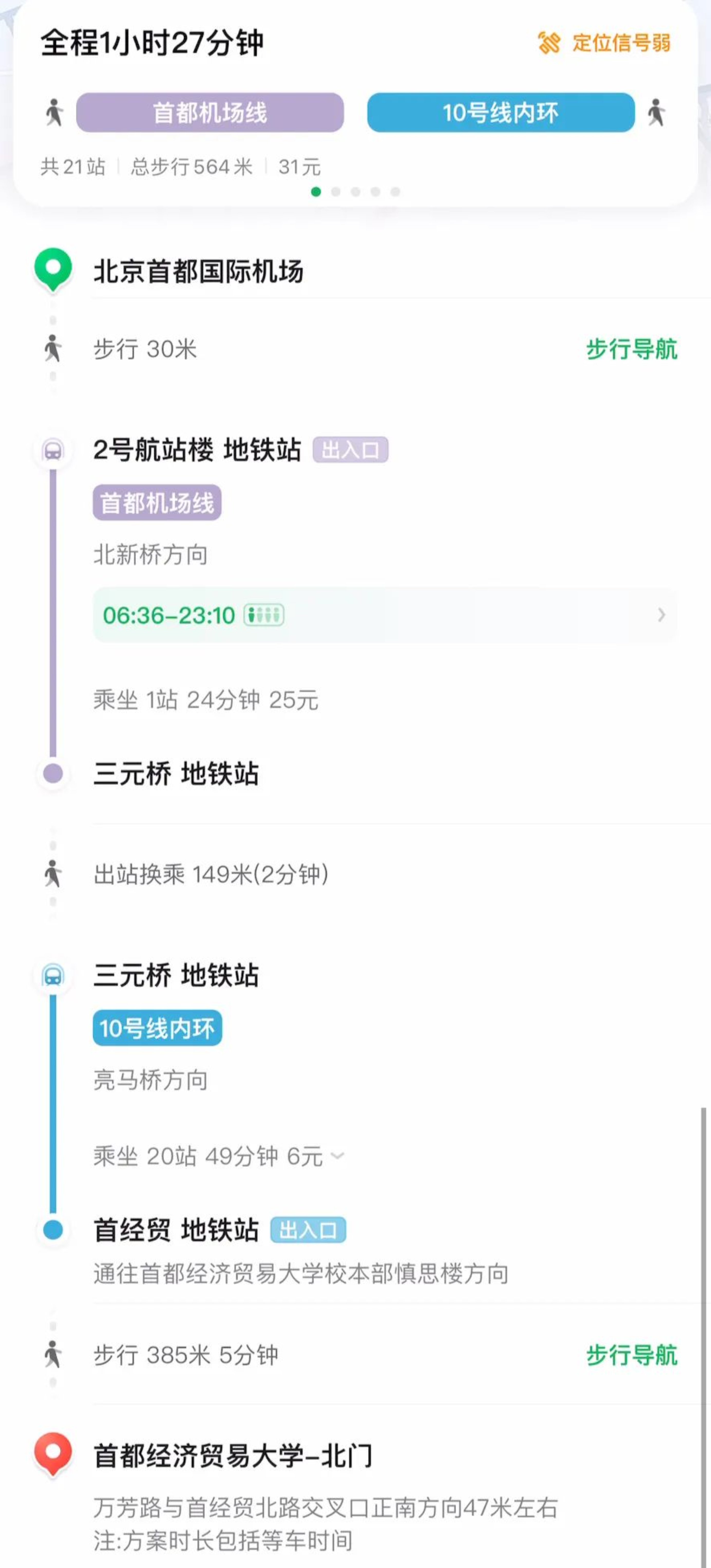 地铁:乘坐首都机场线—三元桥站换成10号线(亮马桥方向)—首经贸站(D口出到达学校北门/C口出到达塞欧公寓)大约1小时20分钟到达
