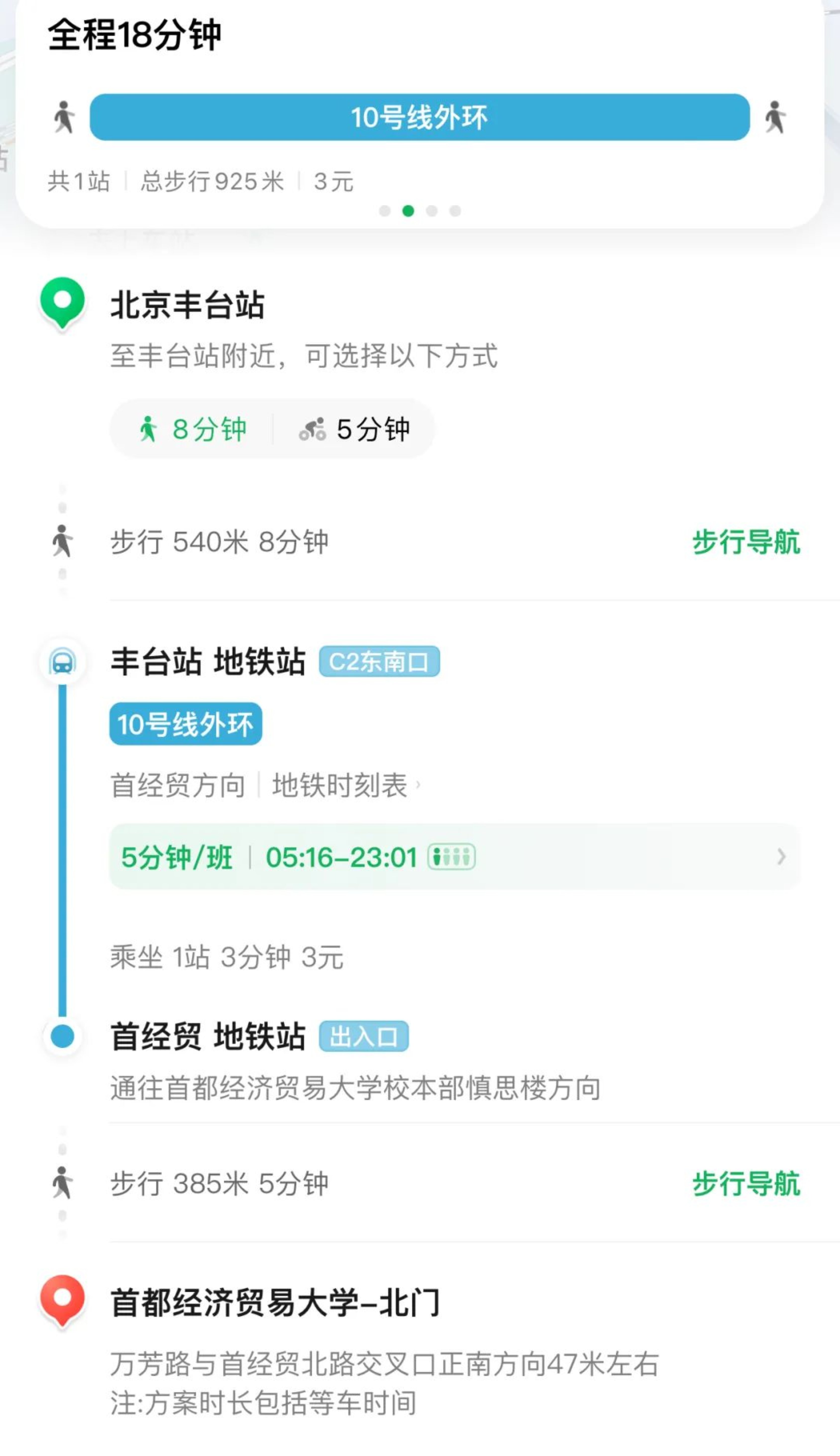 地铁:乘坐10号线(首经贸方向)—首经贸站(D口出到达学校北门/C口出到达塞欧公寓)大约10分钟到达