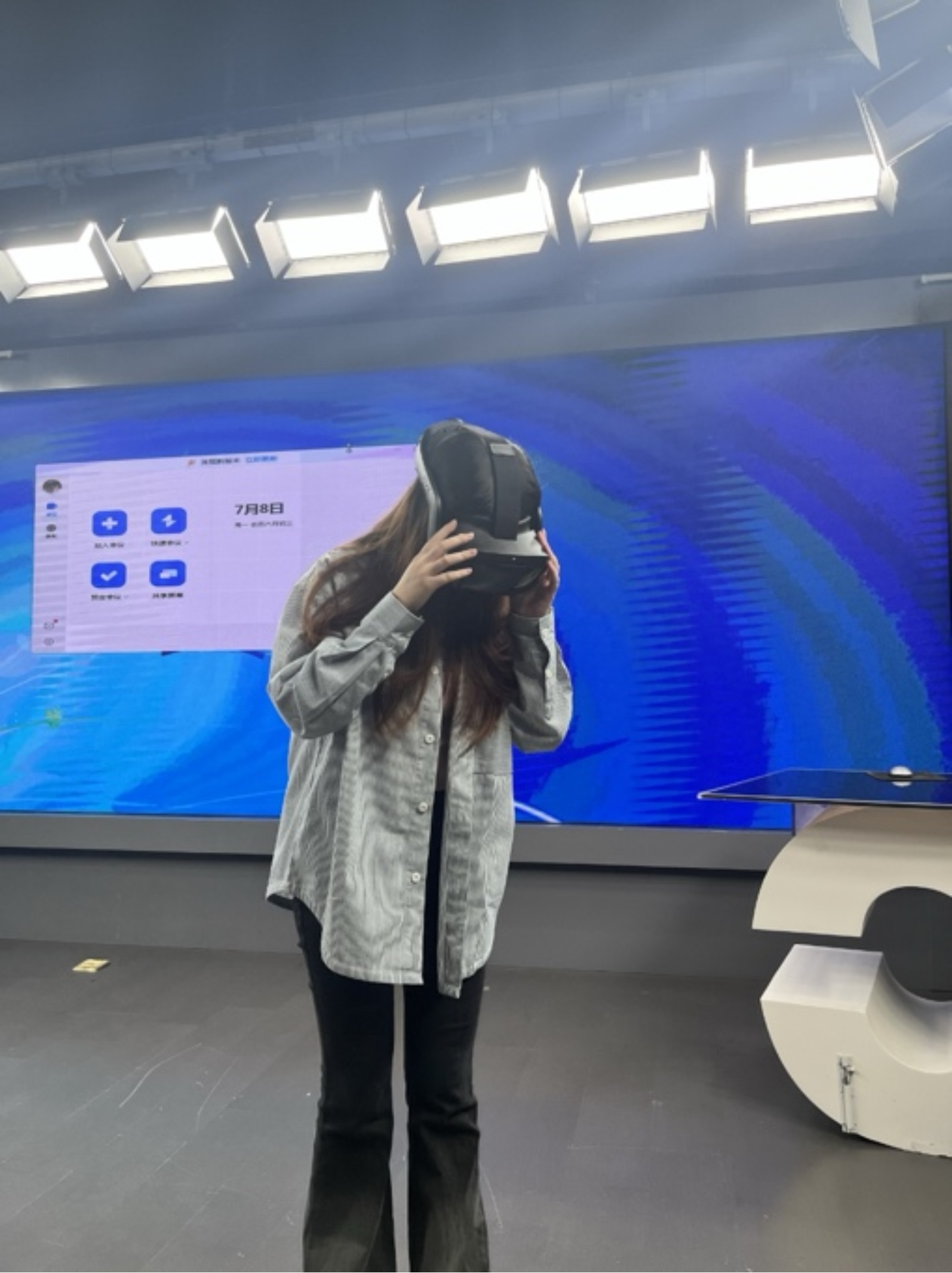 戴上VR头盔,你就能“身临”新闻现场,实现空间上的“零距离”,让新闻“活”在眼前。“初识全景”第一课,实习生在演播室佩戴VR设备,体验中国经济网“‘飞临’探秘冬奥场馆”“全景体验‘永不落幕’的线上世园会”等全景漫游导览系统,感受全景技术赋予新闻的沉浸与交互。