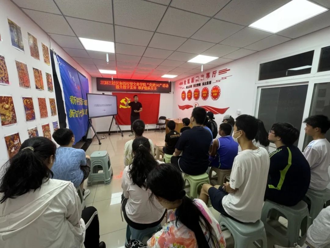 文传学院广告与艺术联合党支部和北京市丰台区新村街道三环新城第三社区坚持党建引领,积极开展联学联建,深入学习贯彻习近平新时代中国特色社会主义思想,通过数字素养专题讲授、党建经验交流、党建资源共享等方式,形成组织互联、资源互通、经验互鉴、发展互促的工作模式,不断推动双方的共同发展。