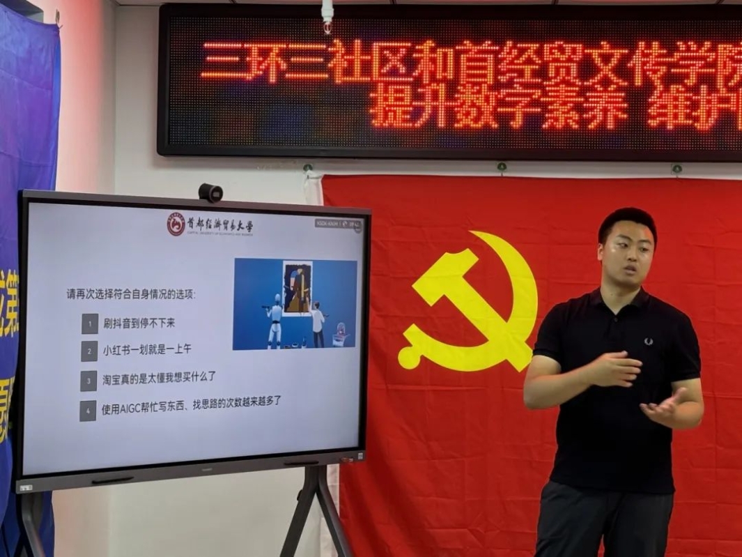为学习贯彻党的二十届三中全会精神,贯彻落实习近平总书记关于党的建设的重要思想和建设教育强国的重要讲话精神,7月19日上午,性爱电影 广告与艺术联合党支部和北京市丰台区新村街道三环新城第三社区开展党建联建系列活动。本次活动由首经贸文传学院广告系教师李荃为三环新城居民做主题为“提升数字素养,维护隐私安全”的数字素养通识内容讲座。