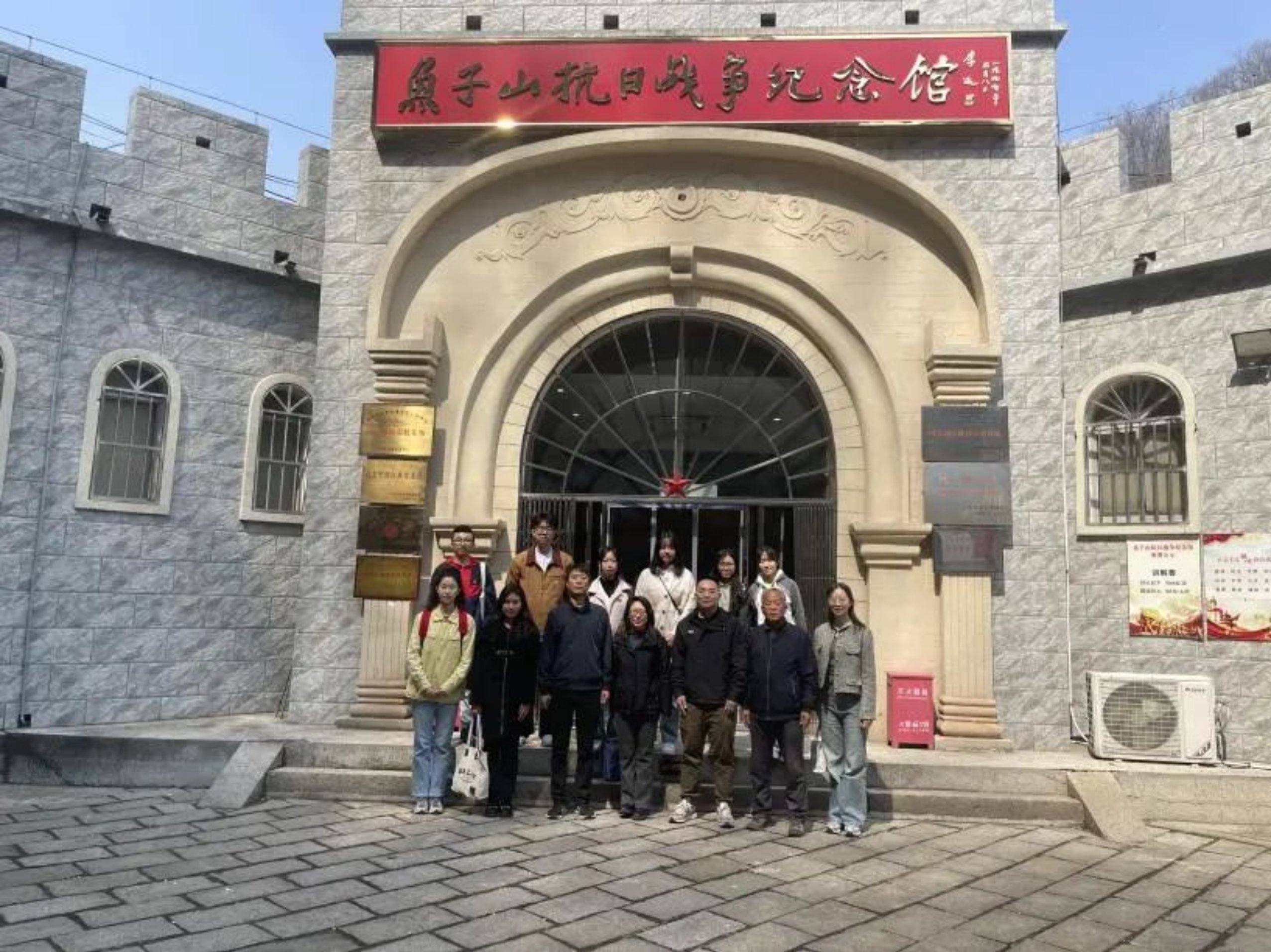 随后,杨金宇和相关负责人带领调研团队参观鱼子山抗日战争纪念馆,学习了解了鱼子山村抗日军民反压迫、反侵略、求解放的斗争历程。访古探今,一座变电站如今被改造成乡村美术馆——电站美术馆是鱼子山村构建的以红色文旅为基础的“农+”新载体,这种融合发展的新模式为学生党员利用专业所长助力乡村振兴提供了新的思路。