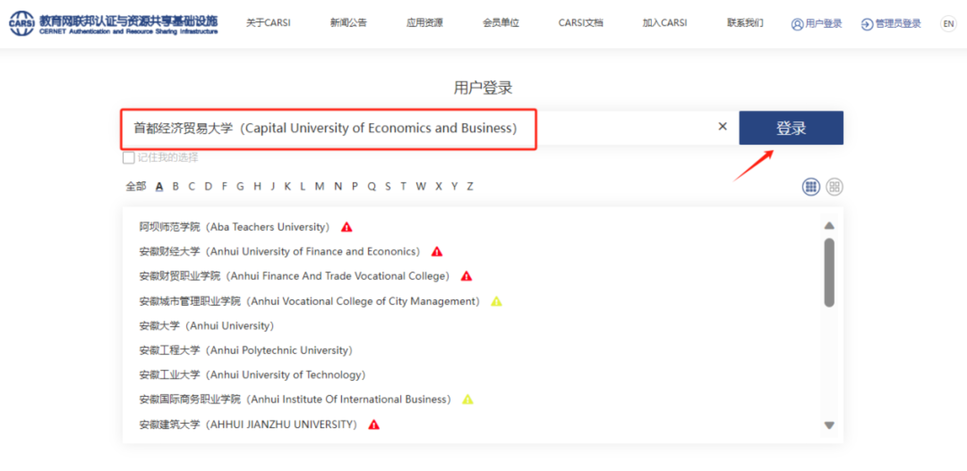目前,图书馆已开通CARSI服务的数据库有:中国知网、人大复印报刊资料、万方学位论文数据库、北大法宝、EPS、RESSET、起点考试网、起点考研网、MeTel教学资源库、道琼斯全球资讯教育平台、超星发现系统、中文在线、Springer、EBSCO、GALE、Wiley、Oxford、Emerald、Cambridge Core在线回溯库、Taylor & Francis数学与统计学科数据库 、ProQuest ABI-inform数据库、Web of Science、ProQuest学位论文全文检索平台、ProQuest Ebook Central和ScienceDirect(Elsevier)期刊数据库等,快快利用起来吧!