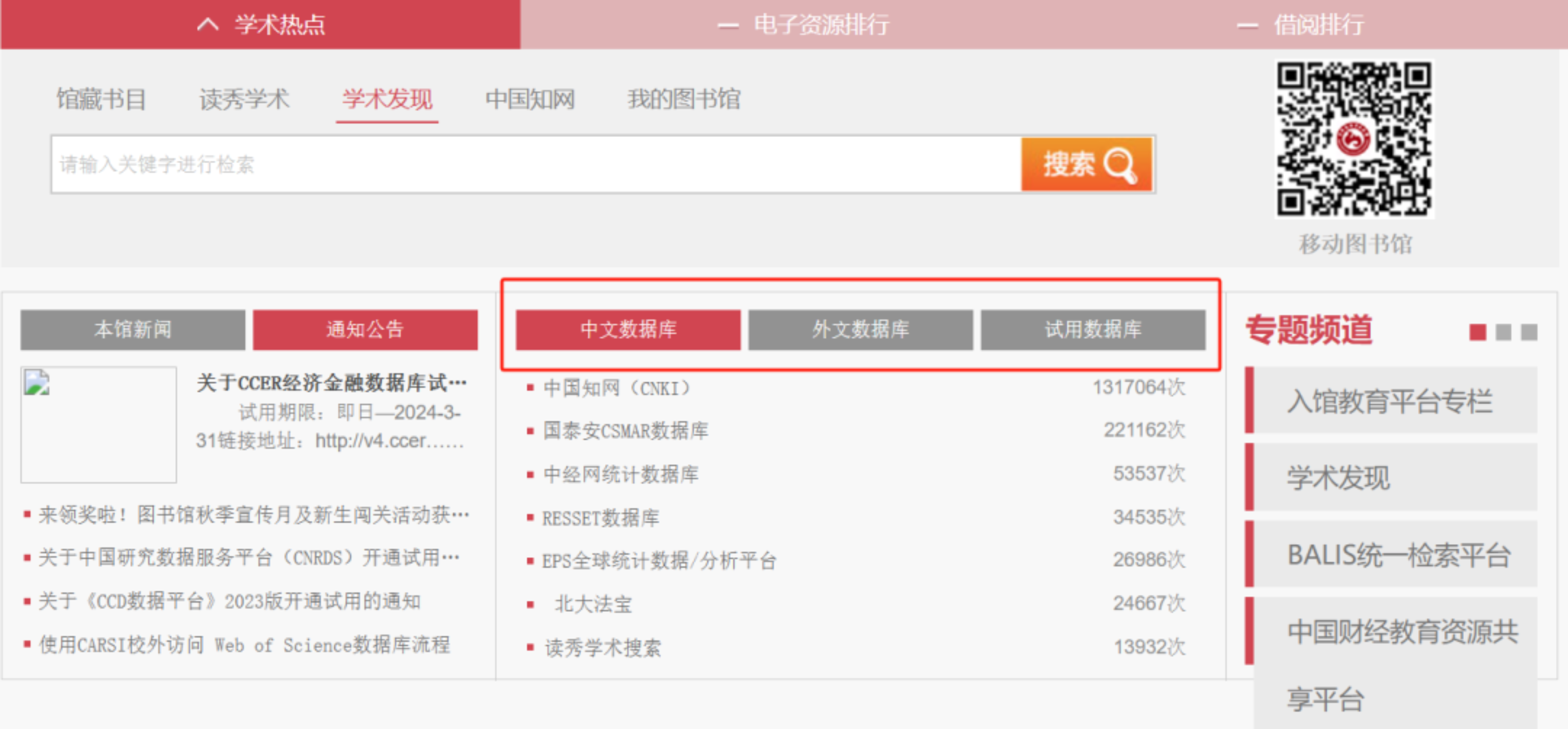 进入综合信息门户-更多-图书馆性爱电影(供远程访问文献数据库),访问中外文数据库。