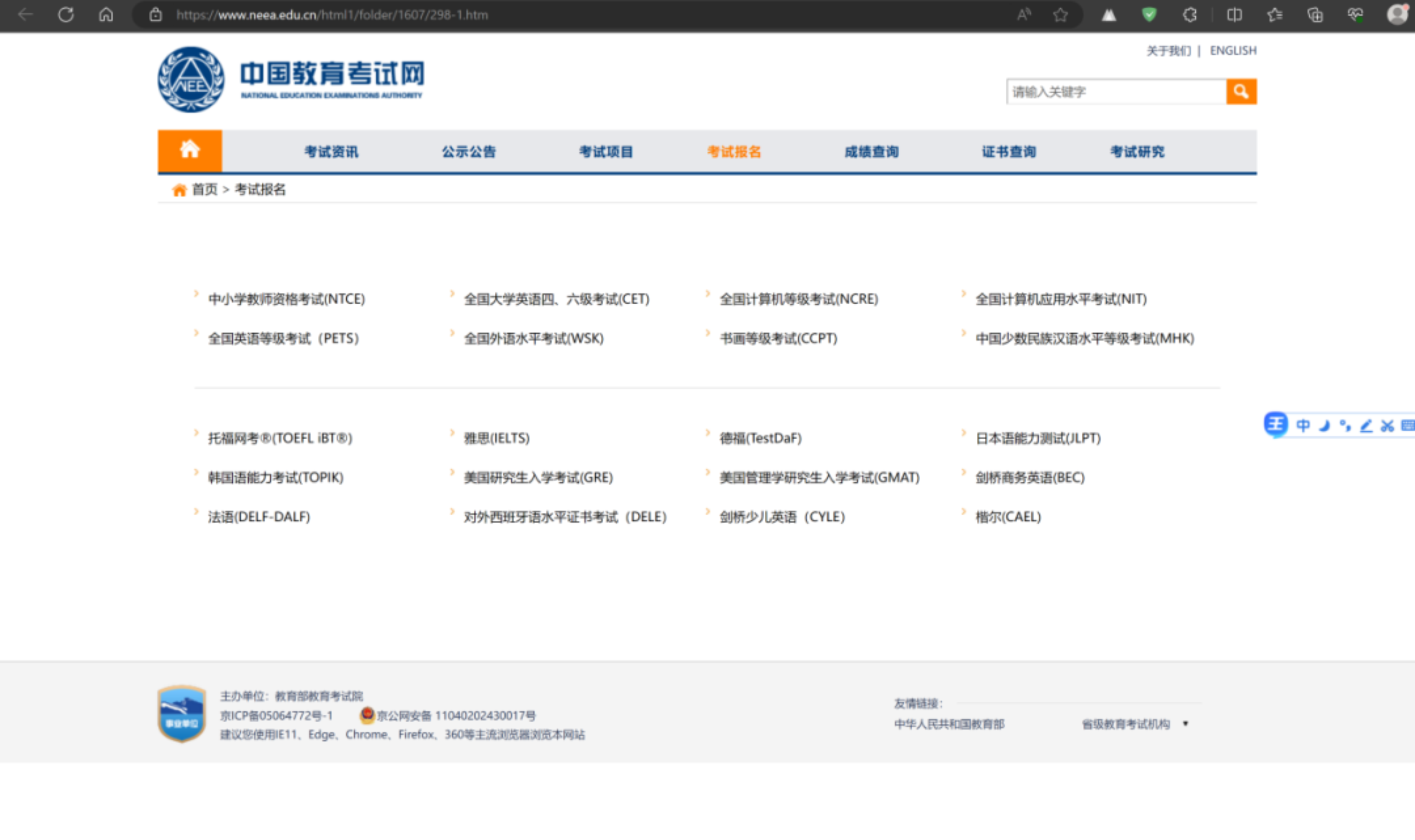 登录中国教育考试网